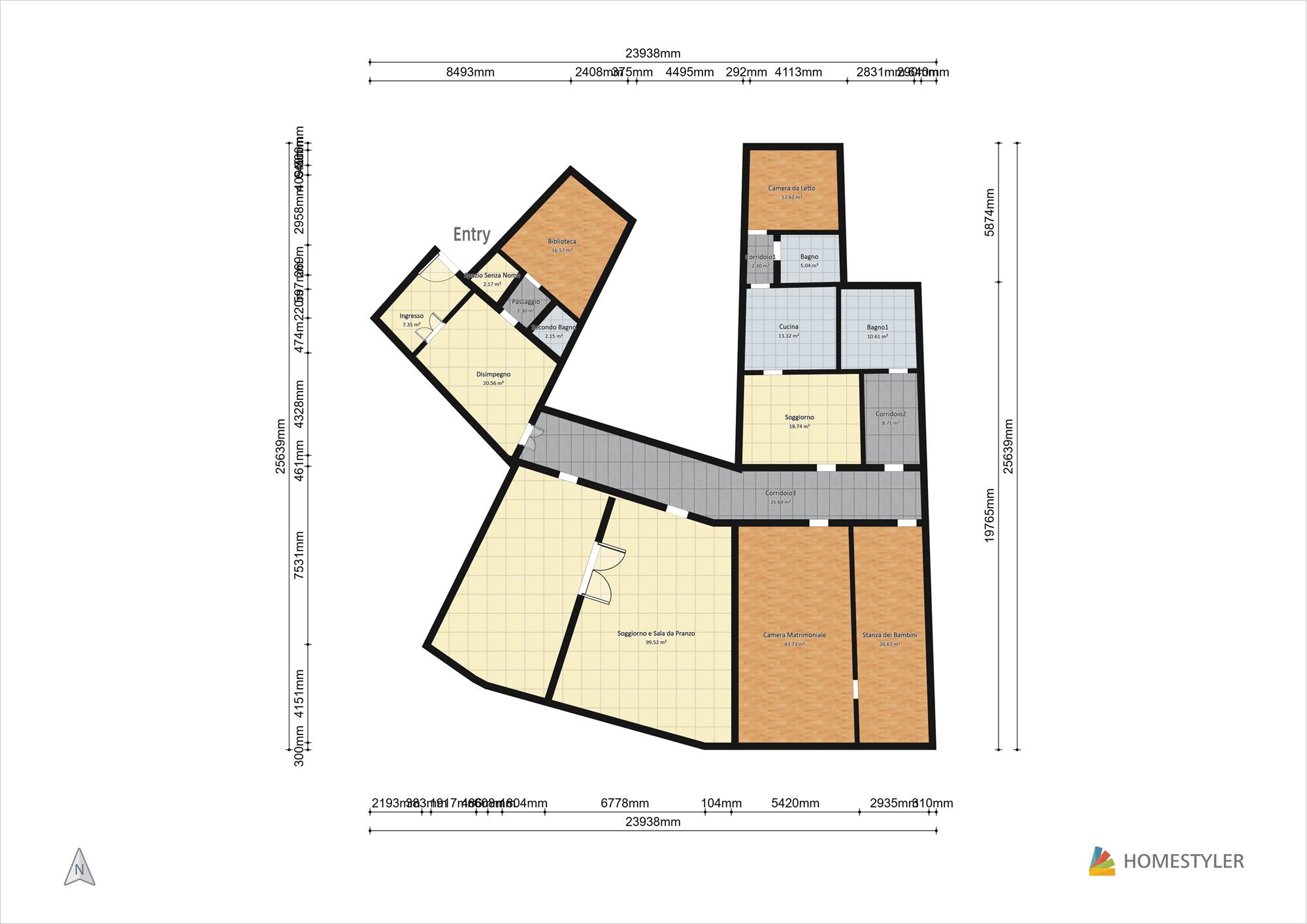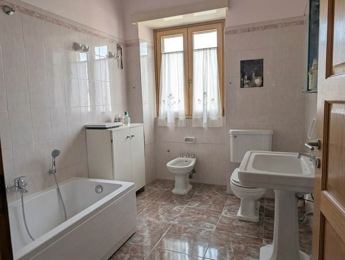 A sinistra del corridoio si accede al soggiorno , a seguire la cucina , il bagno e un'altra camera. In fondo al corridoio , di fronte alle camere da letto, abbiamo un bagno padronale